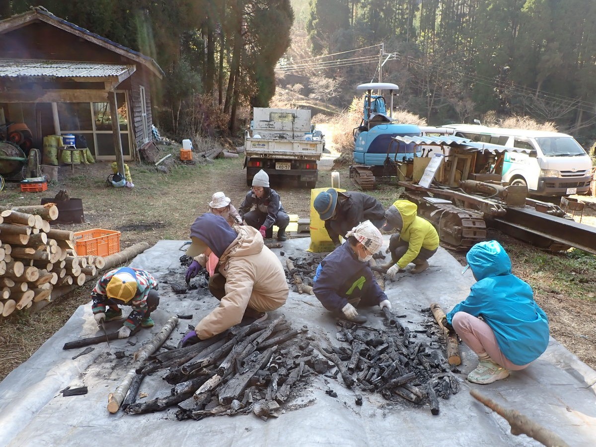 宮園家では、毎年冬に炭窯で木炭を焼いています。