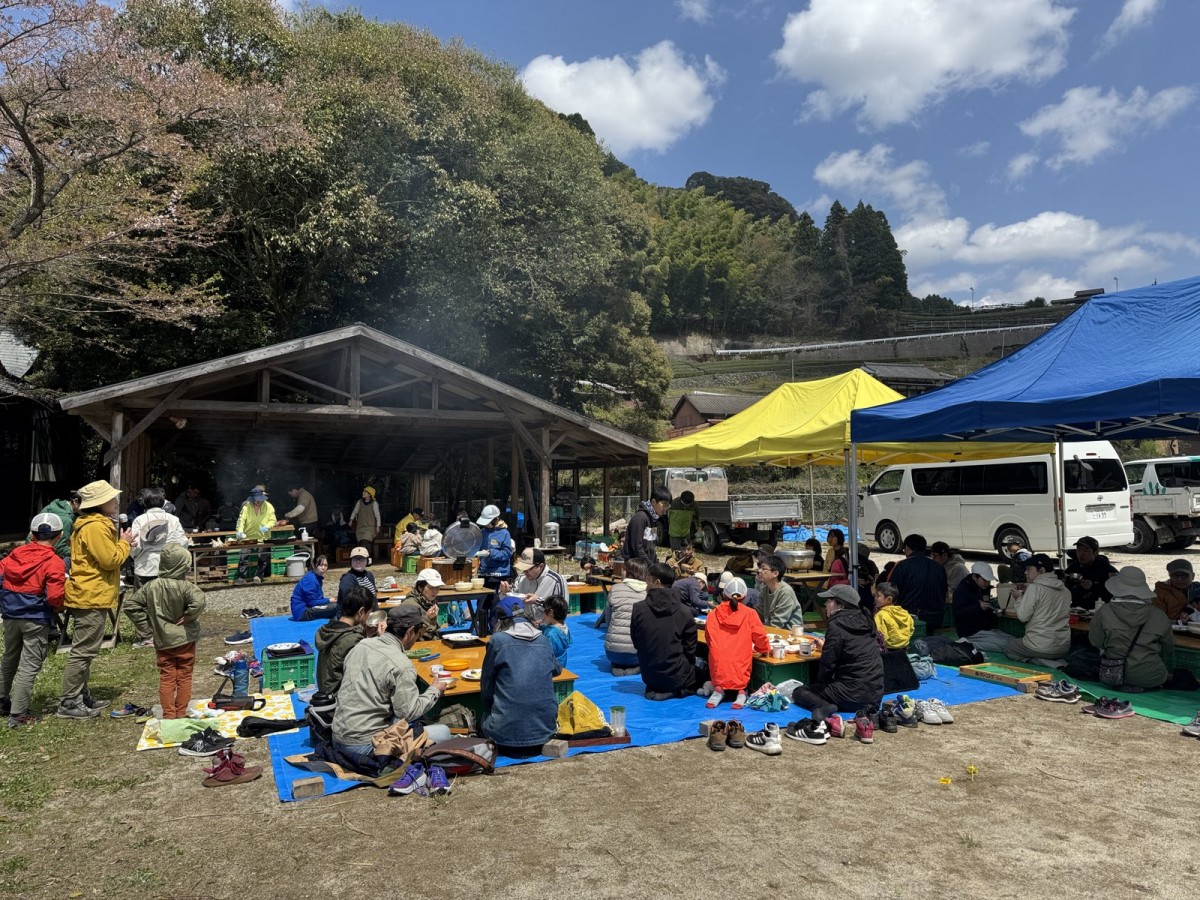 お昼は山の幸たっぷりのごはんを囲み、